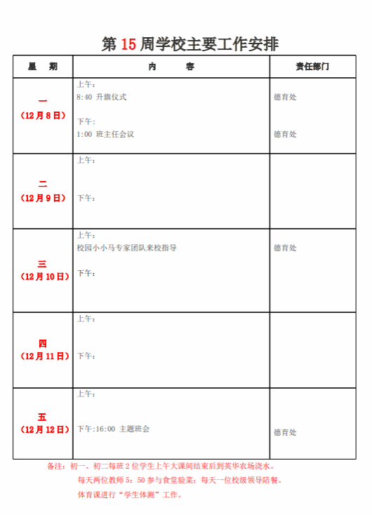 苏州市第十六中学校2025—2026学年第一学期第15周学校主要工作安排