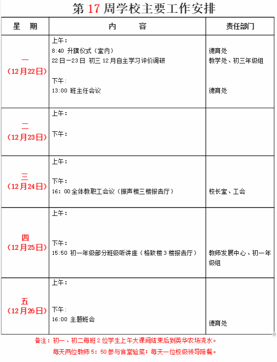 苏州市第十六中学校2025—2026学年第一学期第17周学校主要工作安排