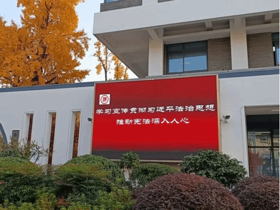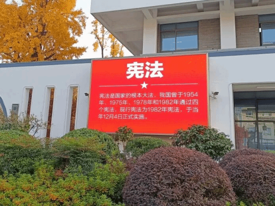活动期间,学校还充分利用户外电子屏等宣传阵地,滚动播放习近平法治思想、宪法规定与原则精神、全面依法治国等相关法治金句,积极营造了浓厚的校园宪法宣传教育氛围和法治文化环境。