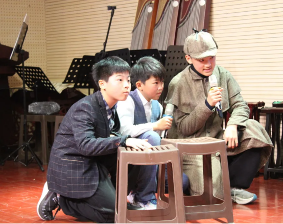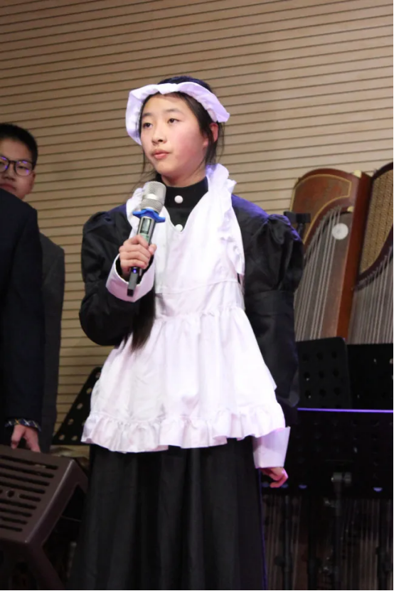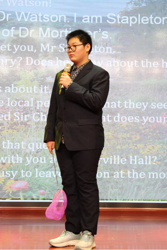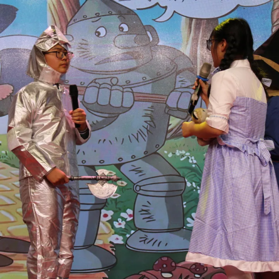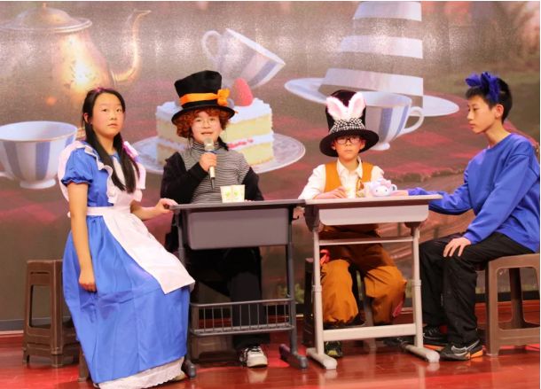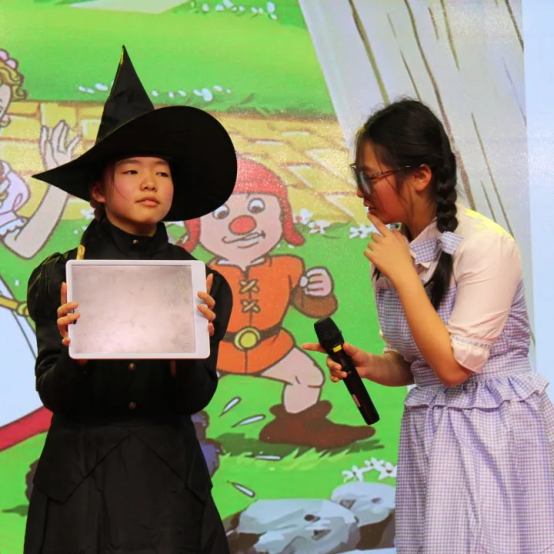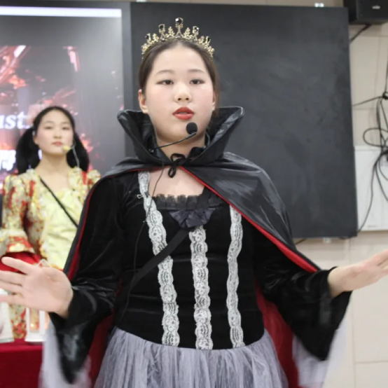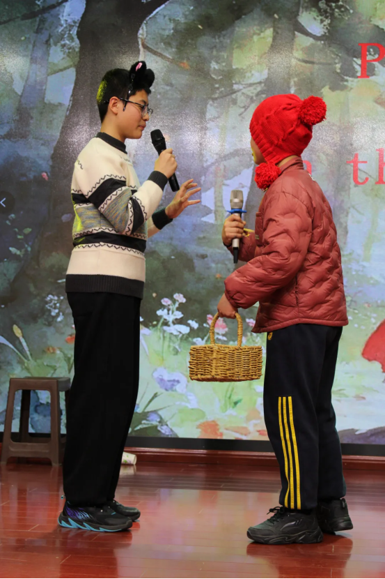 九个班级化身“故事讲述者”,为师生带来一场声情并茂的视听盛宴。参赛作品横跨中外,既有《巴斯克维尔的猎犬》《绿野仙踪》《爱丽丝漫游仙境》《小红帽》等世界文学经典,也包含《愚公移山》等中国故事改编,以及《疯狂动物城》等富有时代气息的作品和环保主题创作。同学们在舞台上巧妙搭配服饰道具,以饱满的情感和生动的语调倾情演绎,既精准捕捉了经典原作的韵味,又融入了属于当代少年的清新创意,充分展现了理解力与创造力。
