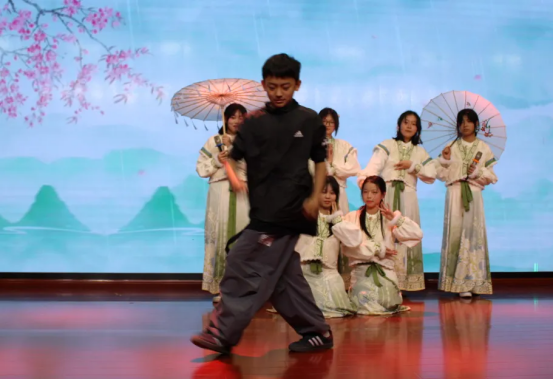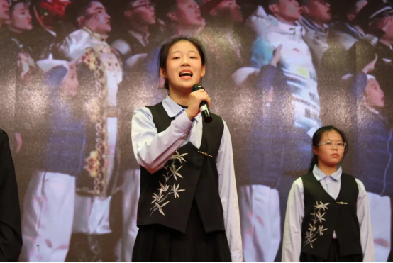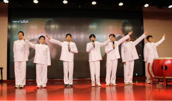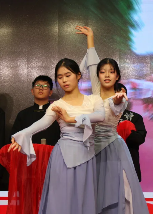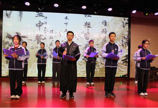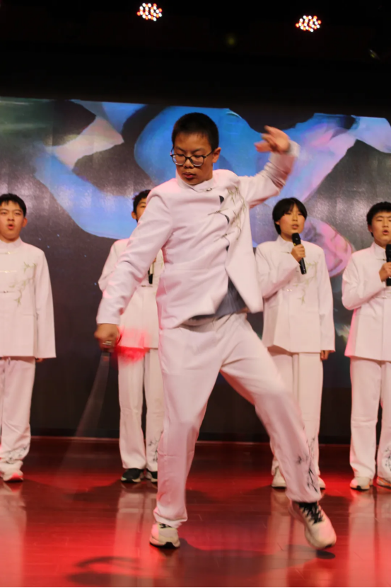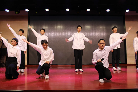 12月19日下午,格致楼的舞台光影流转,迎来初二年级的同学们“诗文吟唱”的华彩篇章。灯光之下,经典不再静默于书卷,而是在少年的声情演绎中被重新唤醒。各班节目以丰富的艺术形式,构建出一幅贯通古今的情感画卷。这里有盛唐的豪情、宋韵的雅致,也有革命年代的铁骨铮铮与青春中国的时代强音。同学们将吟唱、表演、舞蹈与音乐巧妙相融,让每一首诗词都成为可感、可触、可共鸣的舞台生命,为不朽的文字注入了属于这个时代的温度与光芒。