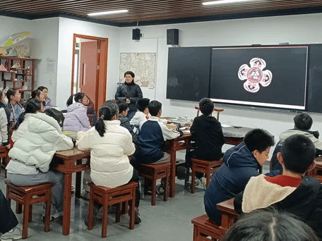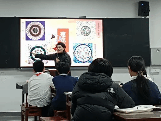 在随堂听课环节,督学走进初一(5)班美术课堂。李小玲老师以“苍穹生花——敦煌藻井纹样再设计”为主题,通过动态演示、VR体验和AI互动,生动讲解了藻井结构与文化内涵,引导学生思考传统纹样的当代创新,课堂获得督学好评。