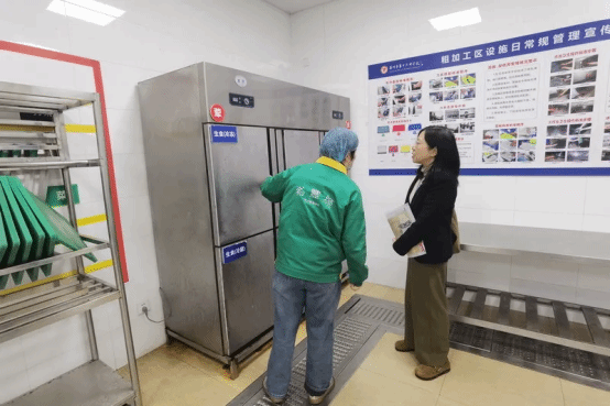 陶督学首先走进食堂,通过现场询问、实地查看等方式,对灶具燃气、开关总阀每日记录、燃气管道月度清洗、冷藏设备管理、就餐区消防设施等环节进行全面检查,重点关注“校园餐”专项整治月常态化落实情况,全力守好食品安全底线。