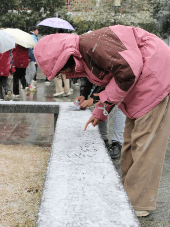 他们迫不及待地冲出教室,有的三五成群,在纷飞的雪中奔跑嬉戏,留下一串串歪歪扭扭却充满欢乐的脚印;有的俯下身,伸出指尖在松软的积雪上细细勾勒,写下稚嫩的心愿。哪怕手冻得通红,也难掩眼里闪烁的光芒。他们互相拥抱,一起仰头接住飘落的雪花,那活泼烂漫的模样,让人不禁想起“梅须逊雪三分白,雪却输梅一段香”——在这场初雪中,孩子们的笑脸,胜过寒梅的芬芳。