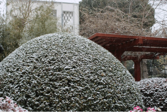 校园深处的几株古树,此刻已是琼枝玉叶。苍劲的枝干在薄雪的覆盖下,少了几分凛冽,多了几分温润。它们静默地伫立着,见证雪在枝头绽放成花。“忽如一夜春风来,千树万树梨花开”,说的大抵是眼前这般景致吧。