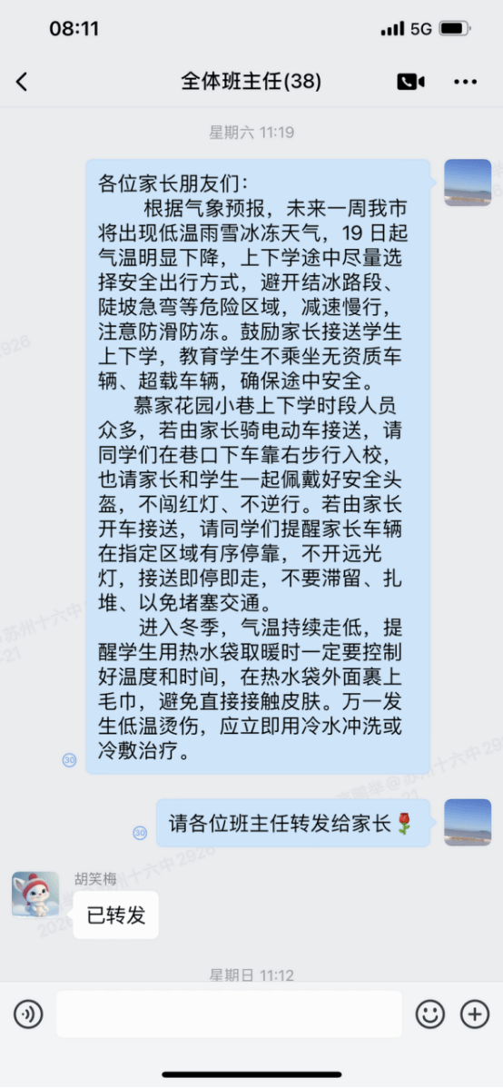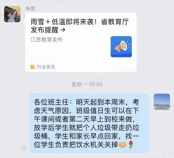 本周二起苏州迎来雨雪冰冻寒潮天气,气温骤降。学校各条线积极行动,协同发力,共同为全校师生筑起一道坚实温暖的防寒屏障。