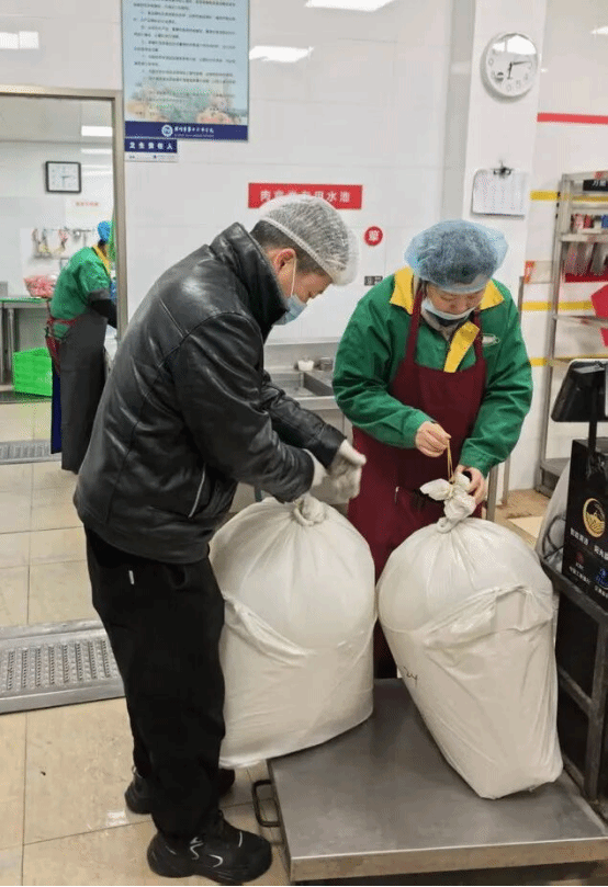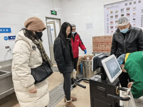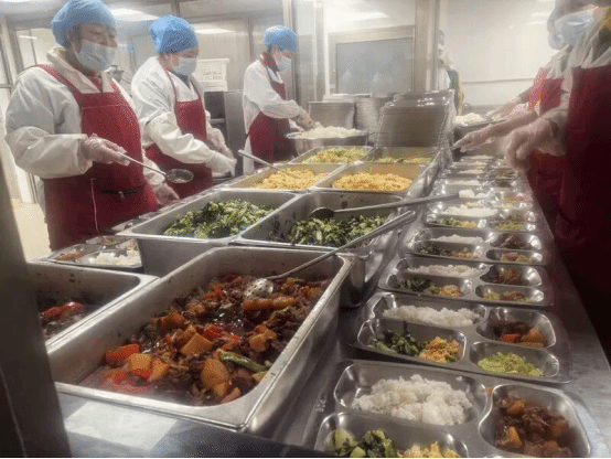 午饭食堂的菜品也格外丰富。食堂特意延迟备餐时间,增加了保温设施,确保所有同学吃上热气腾腾的饭菜。中午时间,饭堂里熙熙攘攘,工作人员真诚且热情。窗外严冬寒风凛冽,窗内饭菜热气飘香。