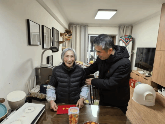 “张老师,我们代表姑苏区教体文旅委和苏州市第十六中学校全体师生来看望您了!提前给您拜个早年!”孙主任、钟处长紧紧握住张老师的手,关切地询问她的身体状况和生活情况。葛书记送上了慰问金,表达对老教师的关怀之情。