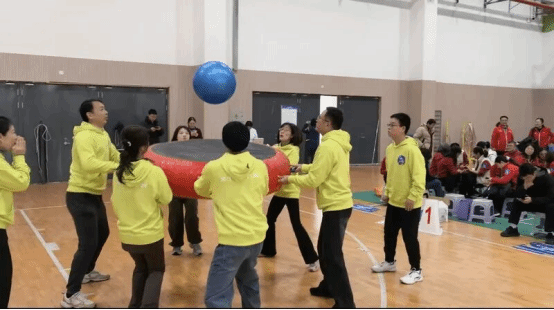 赛场上,教师们精神抖擞、斗志昂扬。“不倒森林”中,大家步伐一致、配合默契,稳稳守护每一根“森林立柱”;“超级汉罗塔”前,大家沉着冷静、分工协作,高效完成层层叠加的挑战;“众星捧月”环节,队员们同心同向,让活力之球稳稳起落;趣味气排球赛场,大家挥汗奔跑、默契传接,展现出极强的团队凝聚力。
