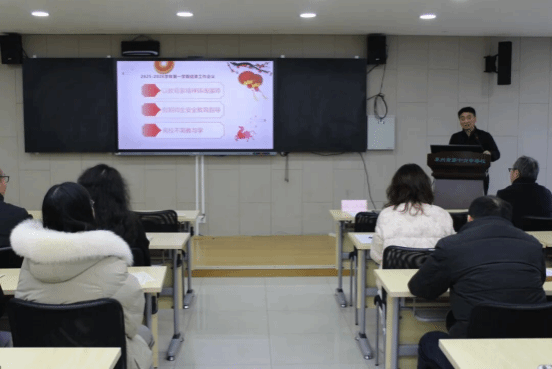 葛国旺书记作总结发言。他表示,一学期以来,学校紧紧围绕高质量发展目标,各项事业稳步推进。校领导班子继续保持务实担当的作风,着力促进学校更大的发展,为教师谋更大的福利、更多的减负,争取最大的公平。同时,葛书记叮嘱全体教职工在假期中严守师德规范,筑牢安全防线,度过一个健康、快乐、祥和、幸福的春节。