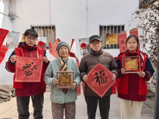 岁末天寒,年味渐浓。为传承中华优秀传统文化,搭建学子与社区的温情桥梁,2月12日上午,我校组织学生志愿者走进养育巷社区,开展 “写春联送福字 + 锡纸拓印画赠送” 主题志愿服务活动,为社区老人送上诚挚的新春祝福。