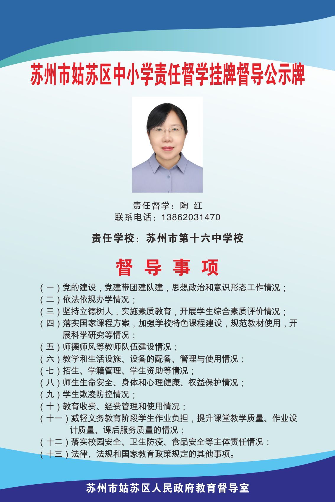 苏州市姑苏区中小学责任督学挂牌督导公示牌