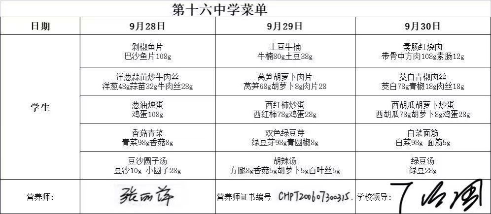 苏州市第十六中学校2025—2026学年第一学期第5周菜单