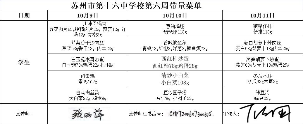 苏州市第十六中学校2025—2026学年第一学期第6周菜单