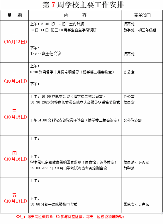 苏州市第十六中学校2025—2026学年第一学期第7周学校主要工作安排