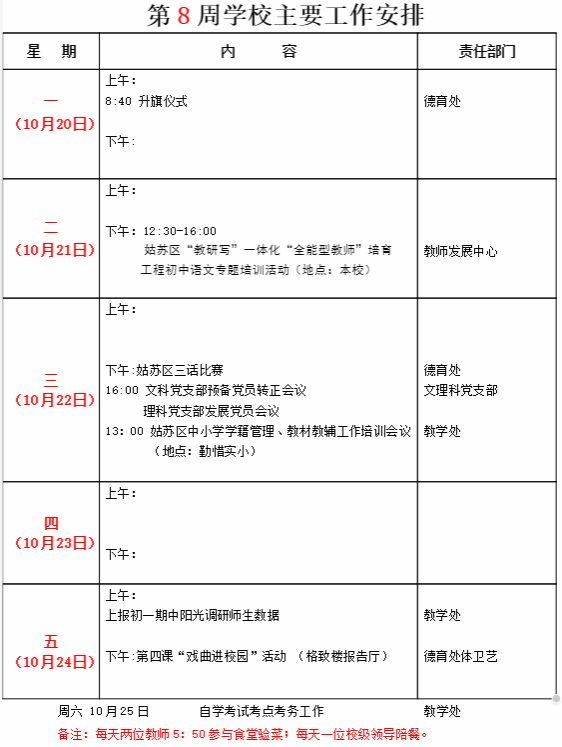 苏州市第十六中学校2025—2026学年第一学期第8周学校主要工作安排