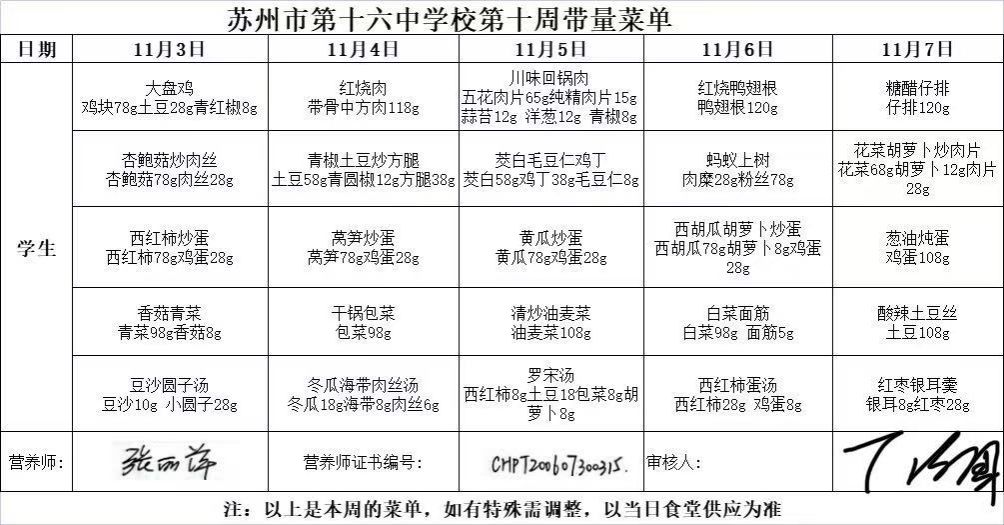 苏州市第十六中学校2025—2026学年第一学期第10周菜单