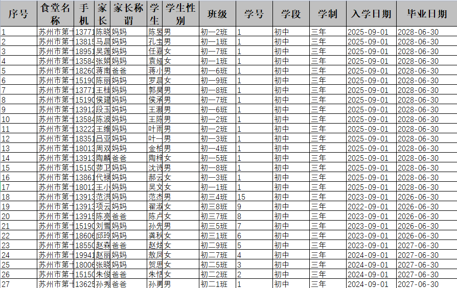 2025-2026学年苏州市第十六中学校膳食家长委员会信息