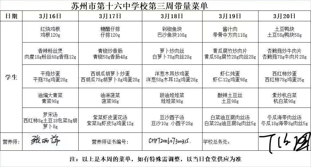 苏州市第十六中学校2025—2026学年第二学期第3周菜单