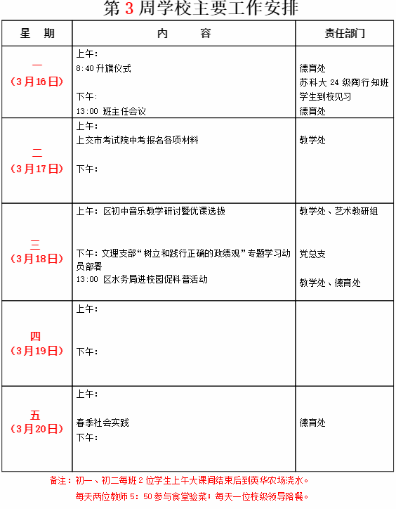 苏州市第十六中学校2025—2026学年第二学期第3周学校主要工作安排