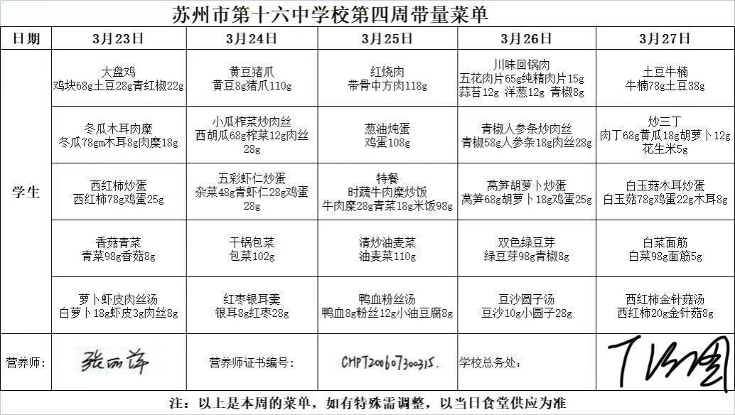 苏州市第十六中学校2025—2026学年第二学期第4周菜单