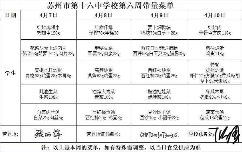 苏州市第十六中学校2025—2026学年第二学期第6周菜单