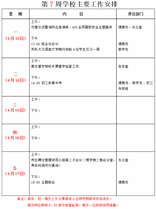 苏州市第十六中学校2025—2026学年第二学期第7周学校主要工作安排