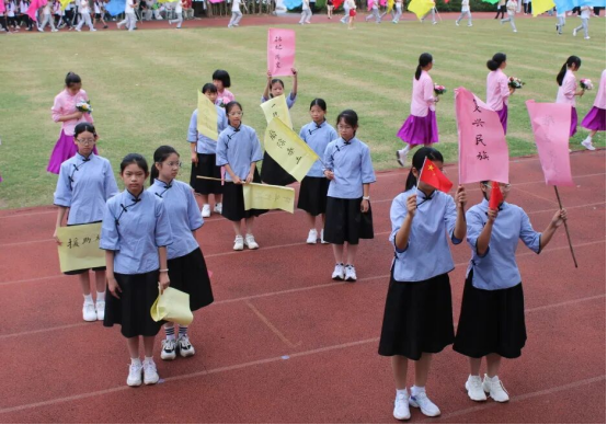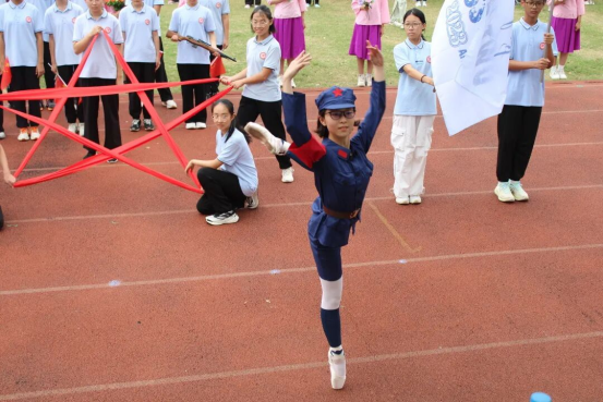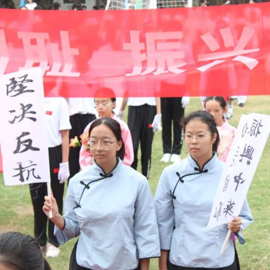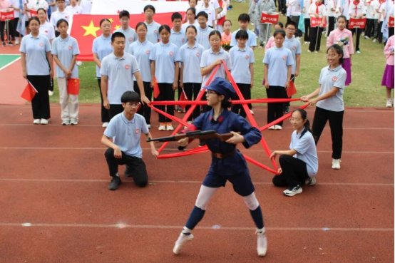 最亮眼的要数各年级班级方阵队。本次运动会班级方阵展示中,同学们通过表现主要历史事件,歌颂抗战英雄人物,体现了坚韧不拔、英勇抗争的精神,这是青春的热情,也是正义的力量,是中华少年铭记历史,崇尚和平,汲取力量的精神品质。