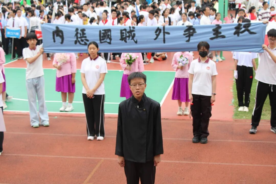 徐然校长在发言中表示,运动会既是个人能力的比拼,也是集体协同的较量;既是对同学们体育水平、道德风尚的集中检验,也是学校素质教育、阳光体育成果的一次展示。希望同学们以纪念伟大抗战胜利、弘扬伟大抗战精神为契机,敢于挑战、勇攀高峰,为班级争光,向祖国致敬!