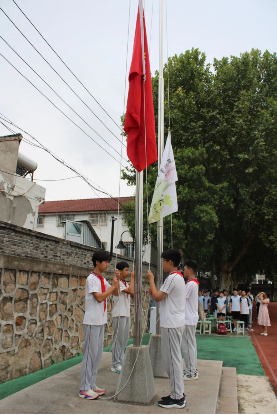 迎风招展,这是校国旗队