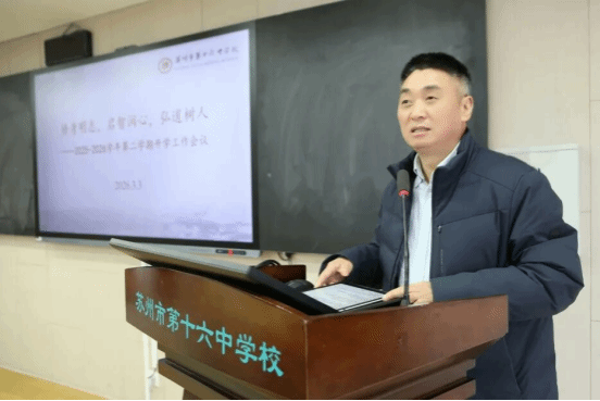 新学期,学校将进一步加强校园意识形态建设,激发教师发展内驱力,鼓励全体教职工积极投身校园各项活动。会议上,葛书记解读推行春秋假、岗位晋升等政策,将以实绩和教育贡献为导向,让实干者得实惠。 新征程的号角已经吹响,新的使命催人奋进。葛书记号召全体教职工,要以“修身明志、启智润心、弘道树人”为指引,迅速从假期模式切换到工作状态,以更加饱满的热情、更加务实的作风,投身到新学期的各项工作中去!