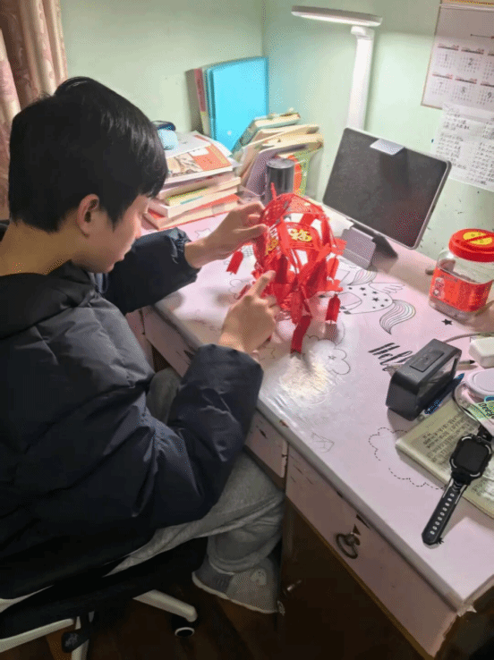 同学们充分发挥想象力,有的制作出玲珑雅致的苏州园林造型灯,有的设计出生动可爱的生肖花灯,还有的融合现代元素打造创意潮灯,线条细腻精巧、配色清新淡雅,既保留了传统花灯的韵味,又彰显着石榴娃的青春创意,让传统年俗在寒假生活中焕发出新的活力。